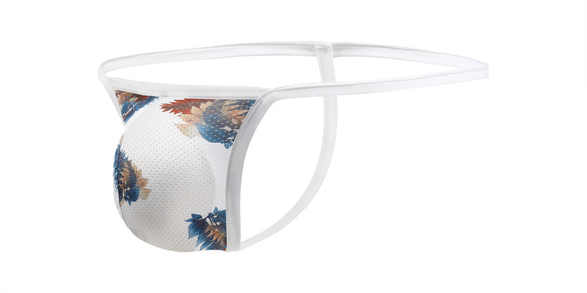 Leaves printed 3pcs Sexy Men's underwear lingerie mesh holes thongs t-string g-string #E074