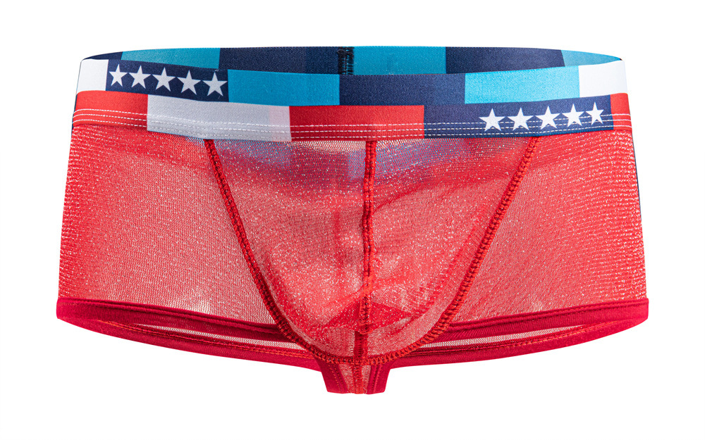 3PK Men's Sexy Lingerie Underwear Shiny Mesh Gauze Sheer Boxer Briefs Underpants Red E076B