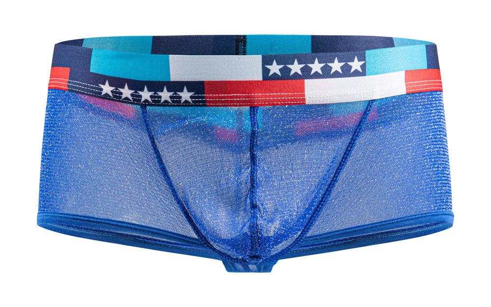 3PK Sexy Shiny Mesh Gauze Lingerie Men's Underwear Sheer Boxer Briefs Underpants Blue E076B