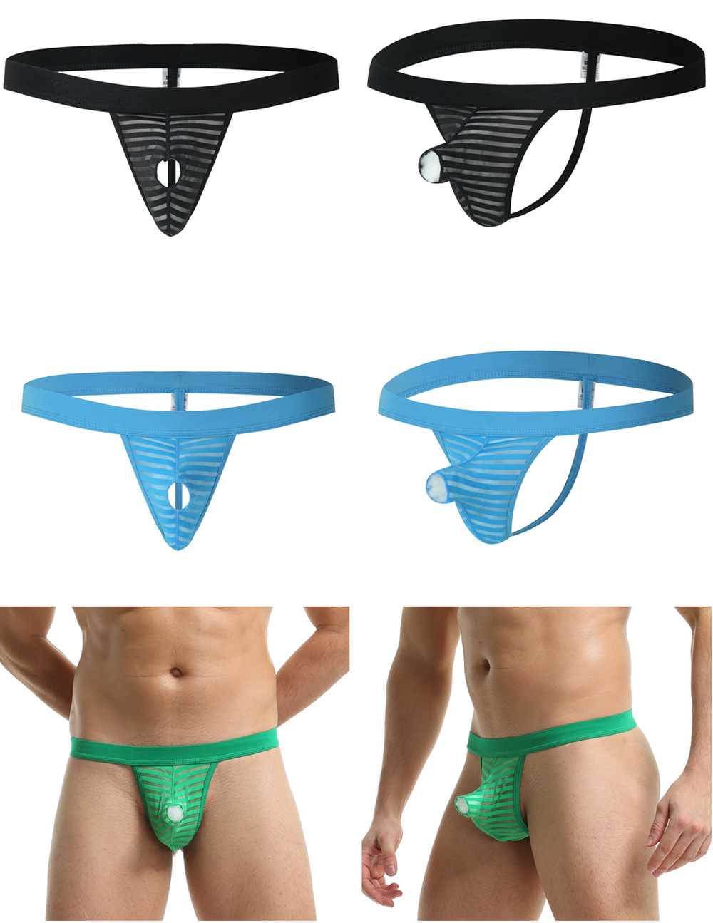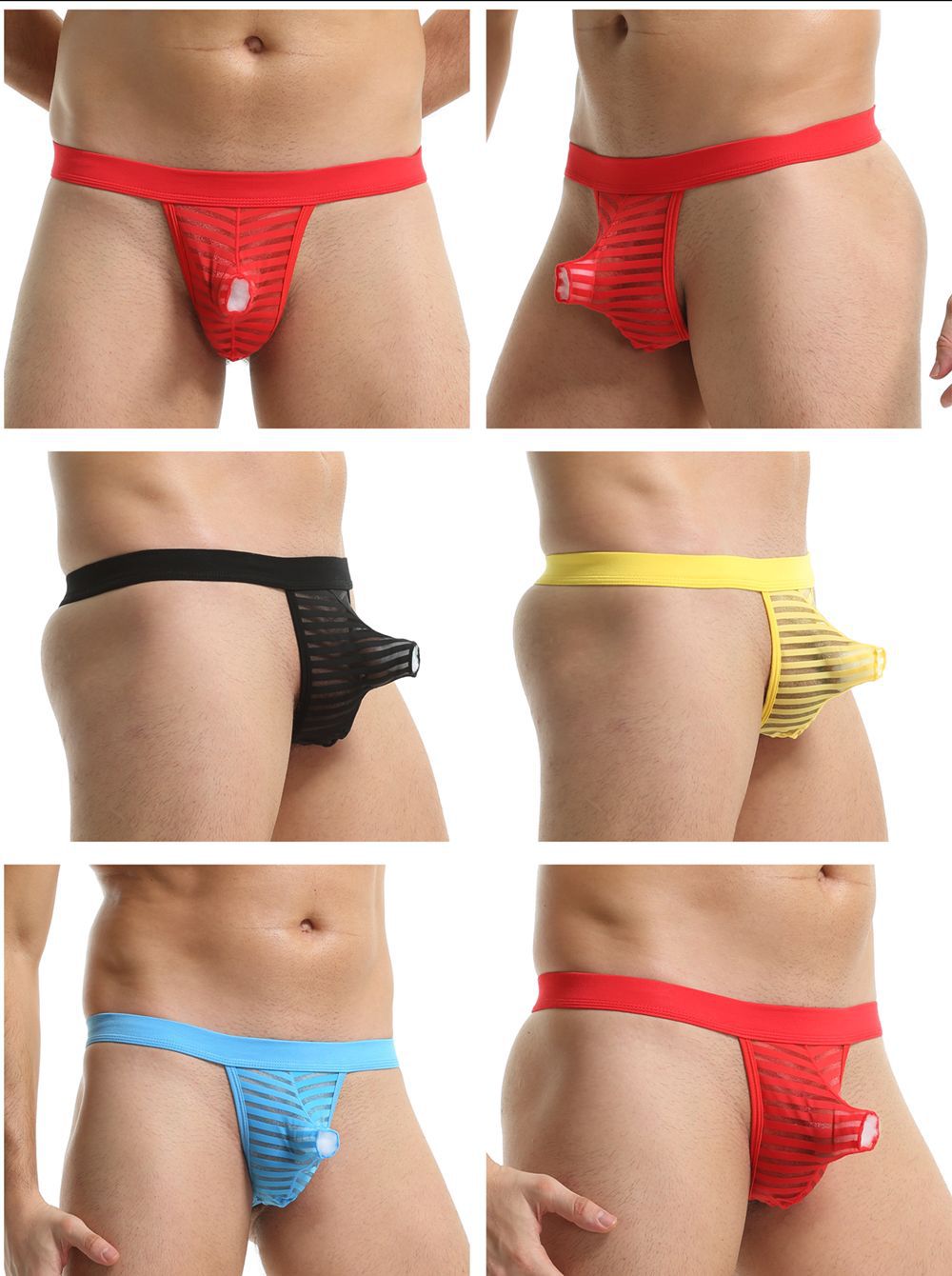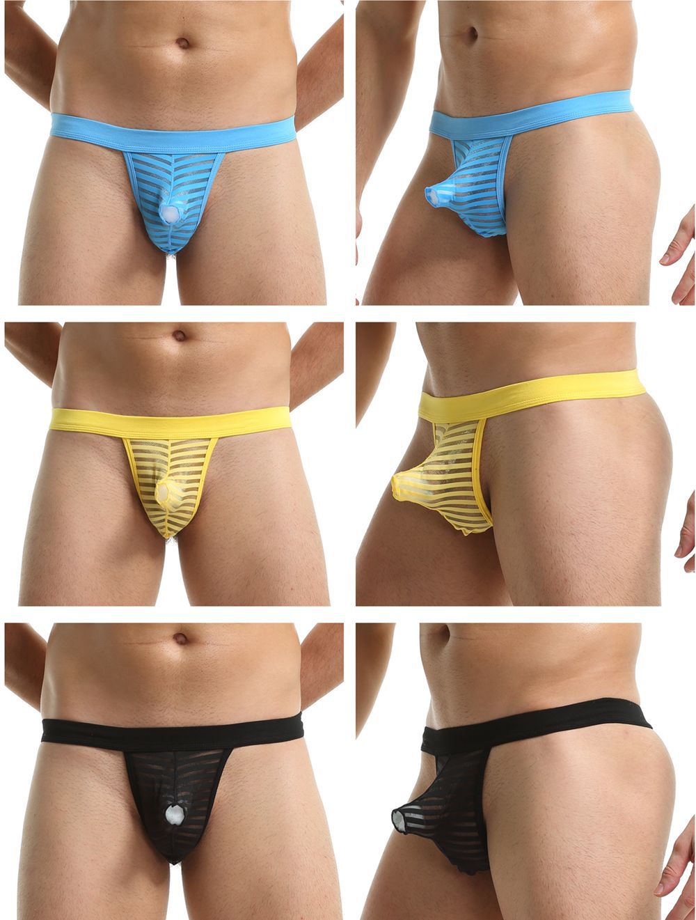 Wholesale 3PK Mens Sexy Underwear Lingerie Mesh Gauze Elephant Tube Translucent Thong G-string MJ2106