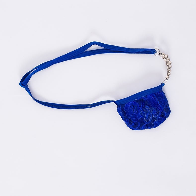 Men sexy g-strings beads decoration lace pouch tanga thong t-string Blue 2PK #1013