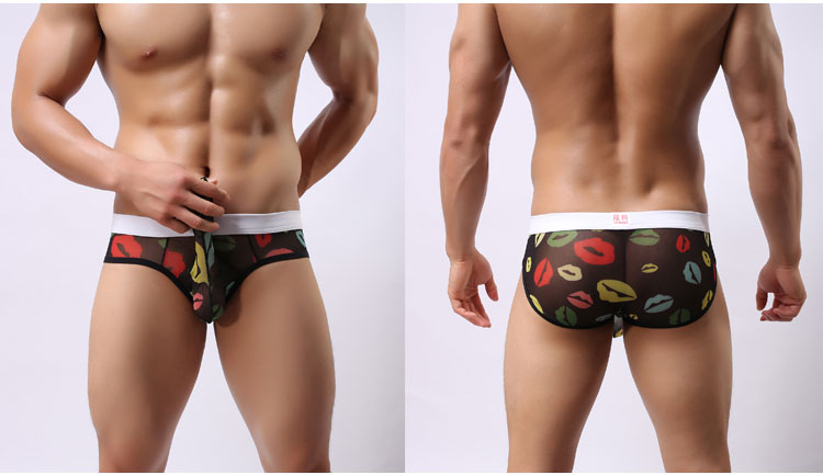 Mixed 2PK Rosy Lips Mesh Gauze Briefs Lonjo Men's sexy Underwear underpants 603