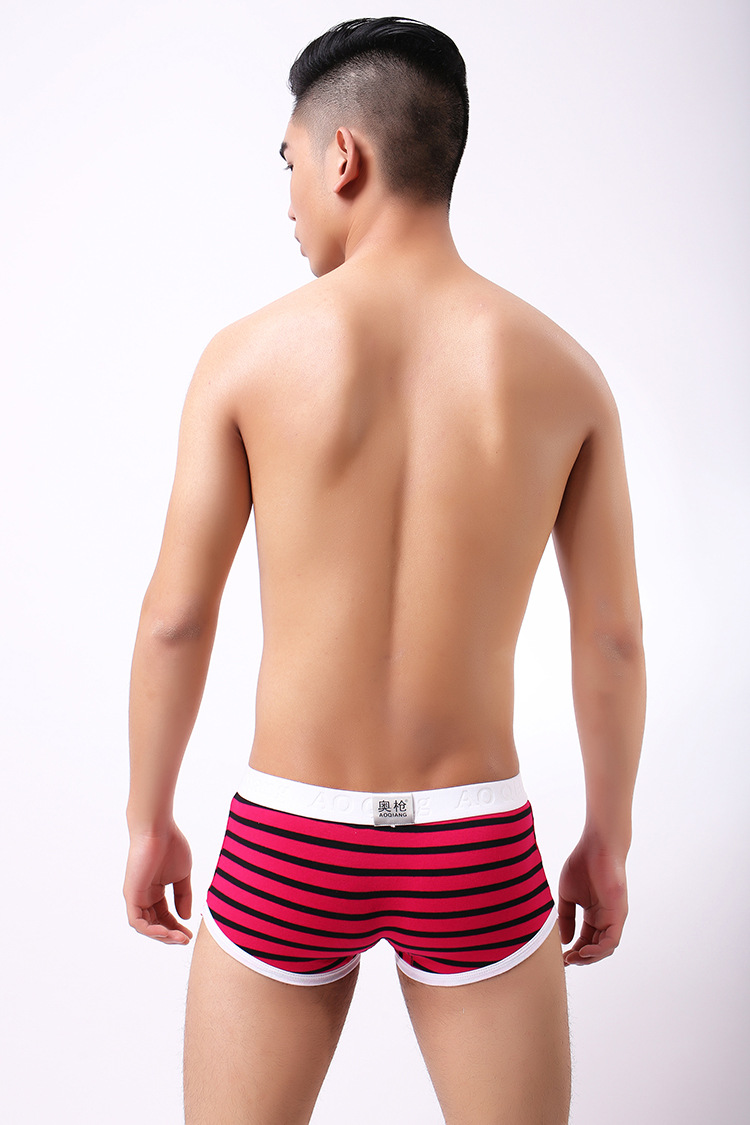 Rose striped Men's sexy underwear cotton blend mid-rise boxer briefs #A60