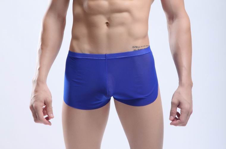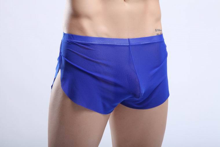 Blue Men's sexy underwear transparent mesh gauze breathable boxer briefs #M14-3