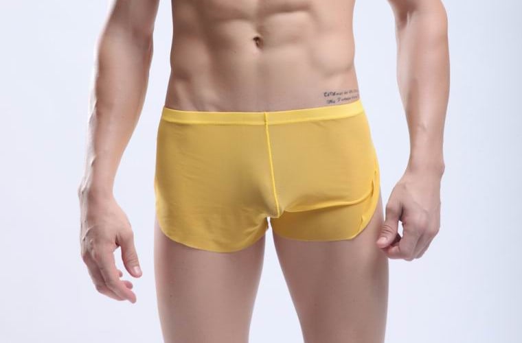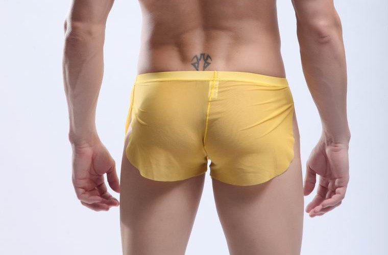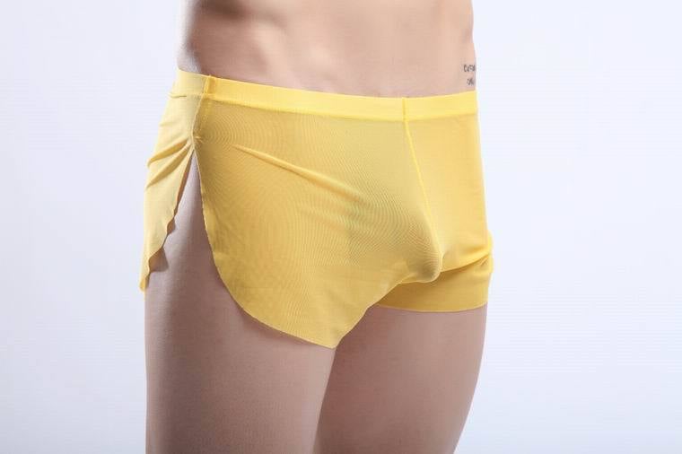 Yellow Men's sexy underwear transparent mesh gauze breathable boxer briefs #M14-3
