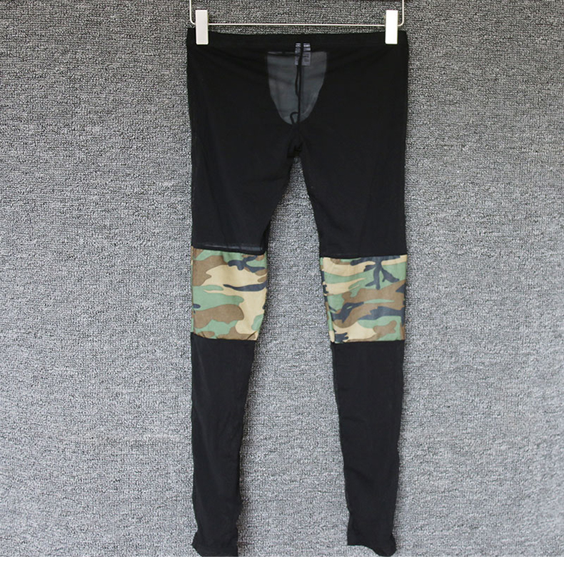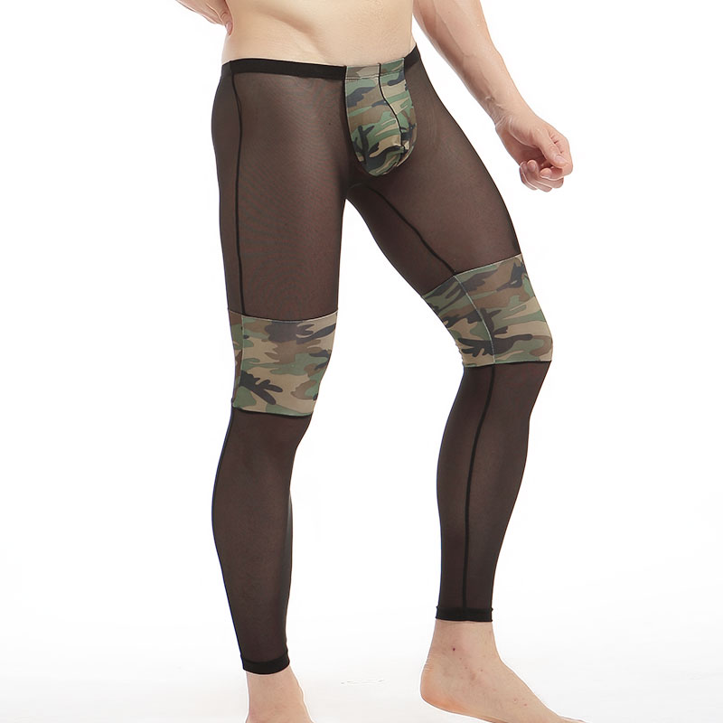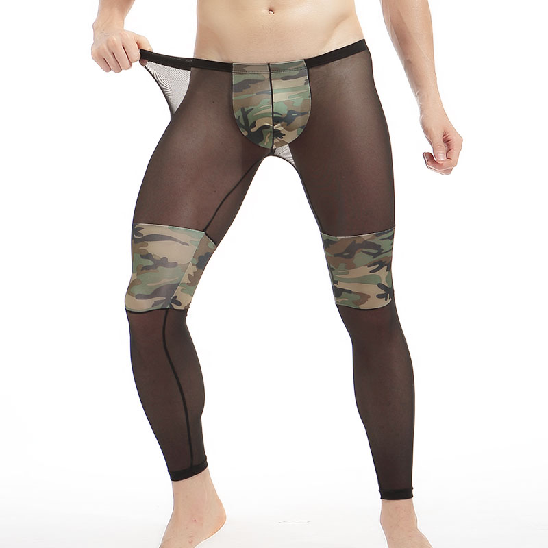 Sexy men's underwear lingerie mesh camouflage patchwork transparent sleep bottoms loungewear pants 438