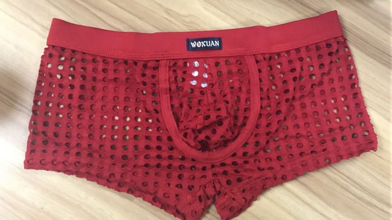 Red sexy gay mens mesh holes transparent fishnets panties underpants underwear