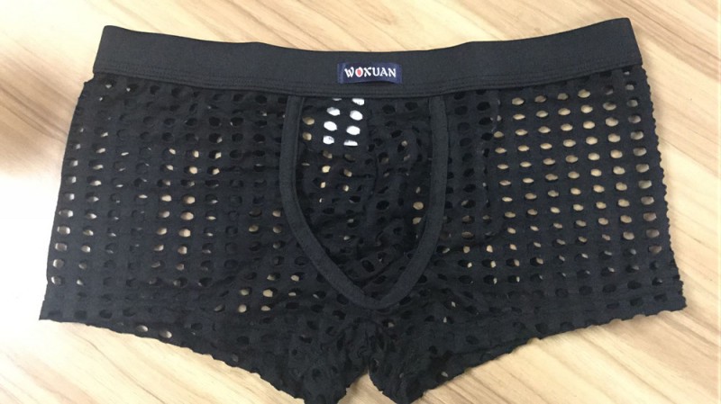 Black sexy gay mens mesh holes transparent fishnets panties underpants underwear #03PJ