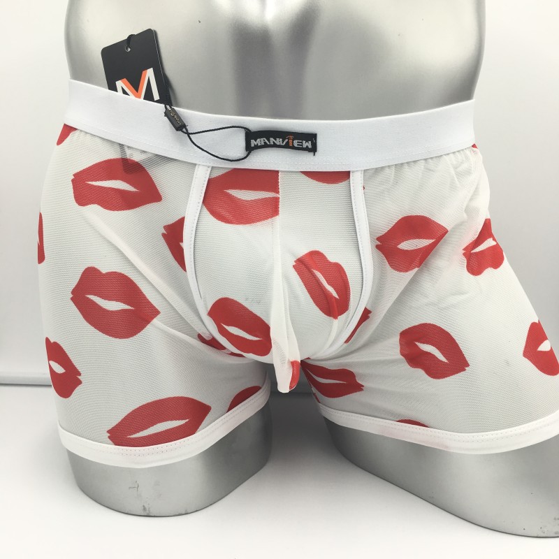 Red lips mesh gauze sexy men's underwear boxer briefs