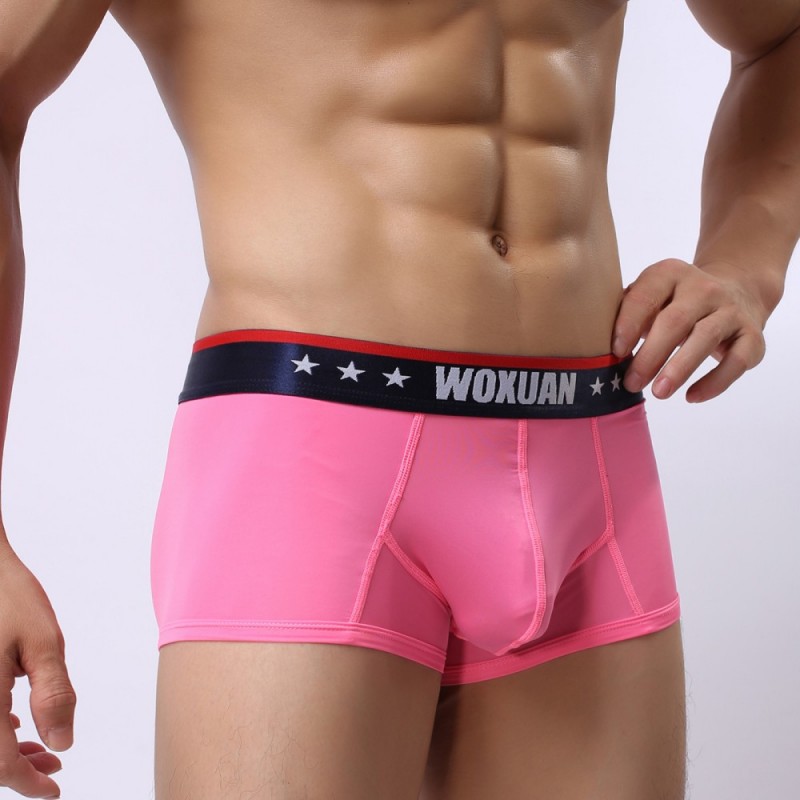 Pink extra-thin ice slik men's sexy underwear see-through pouch boxer briefs #WX012PJ