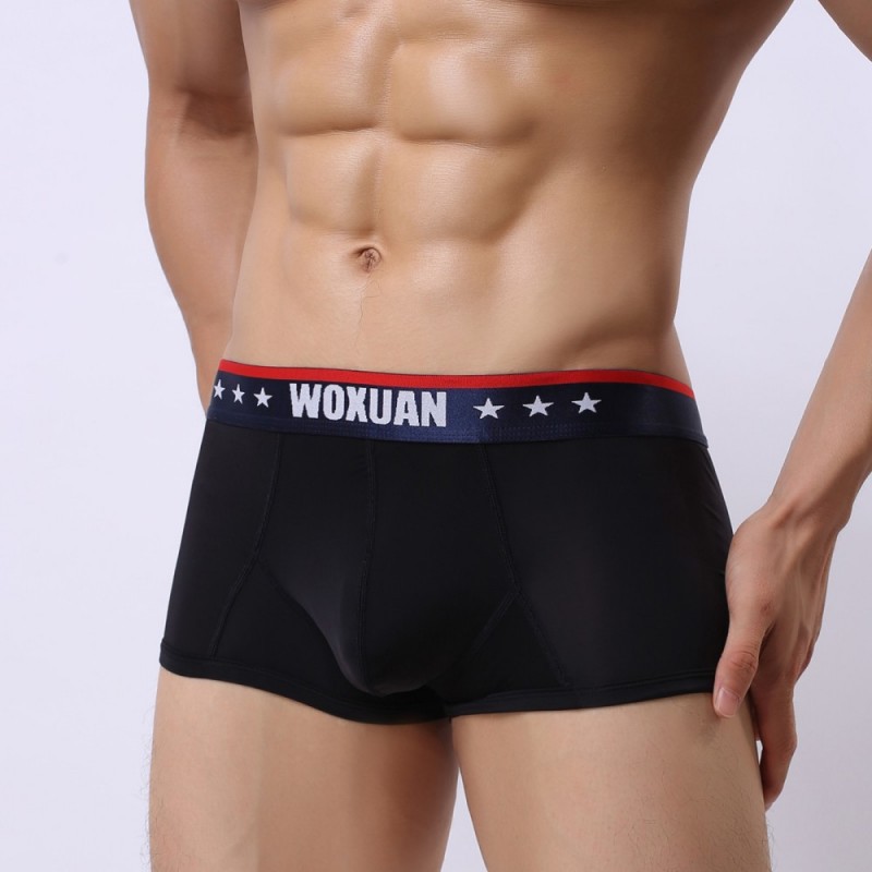 Black extra-thin ice slik men's sexy underwear see-through pouch boxer briefs #WX012PJ