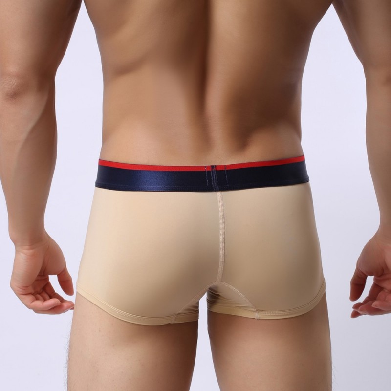 Beige extra-thin ice slik men's sexy underwear see-through pouch boxer briefs #WX012PJ