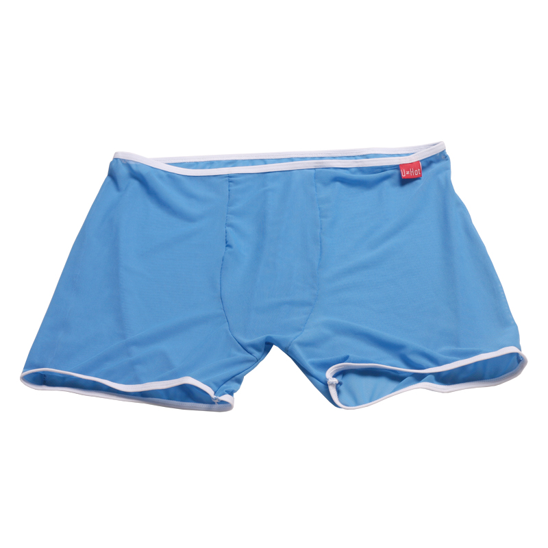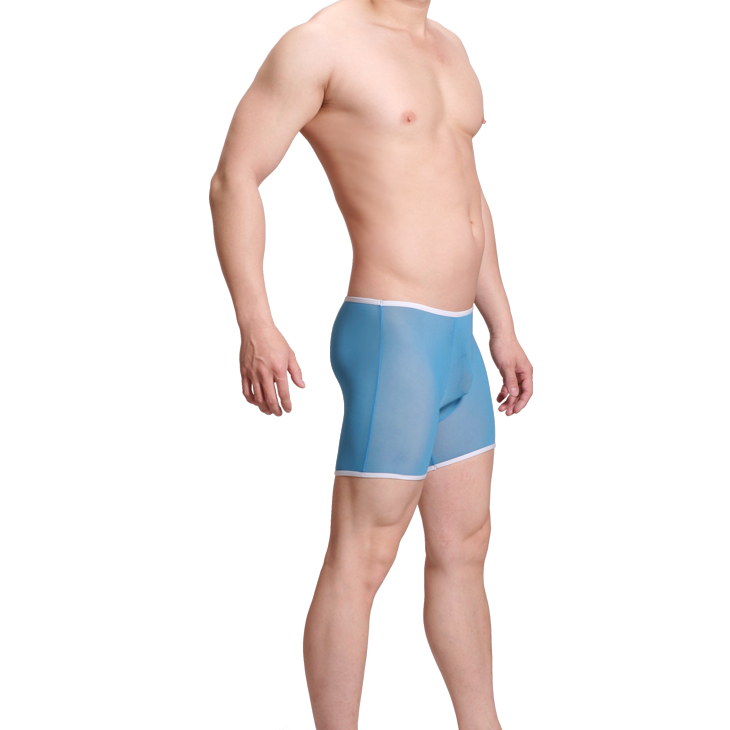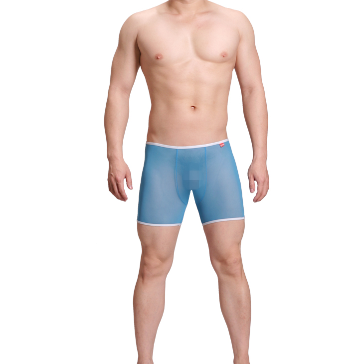 2pcs Blue mesh gauze Uzhot men's sexy underwear transparent boxers underpants #14003