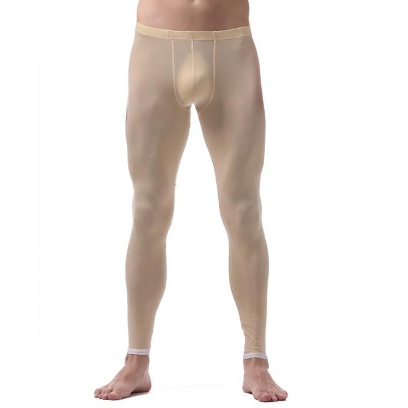 Beige Sexy Men's underwear extra-thin ice silky sleep bottoms lounge pants #VS007QK