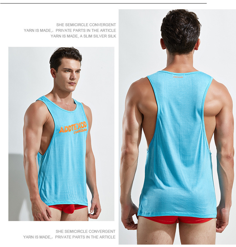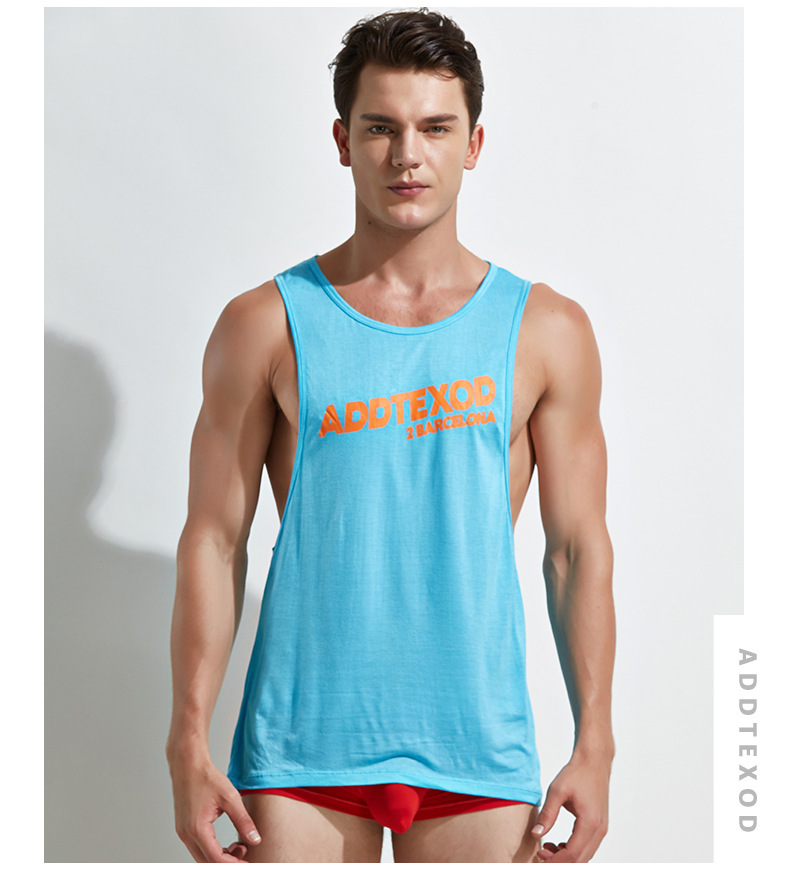 Men's summer clothing cotton blend sports fitness sports tank tops Blue #DX198