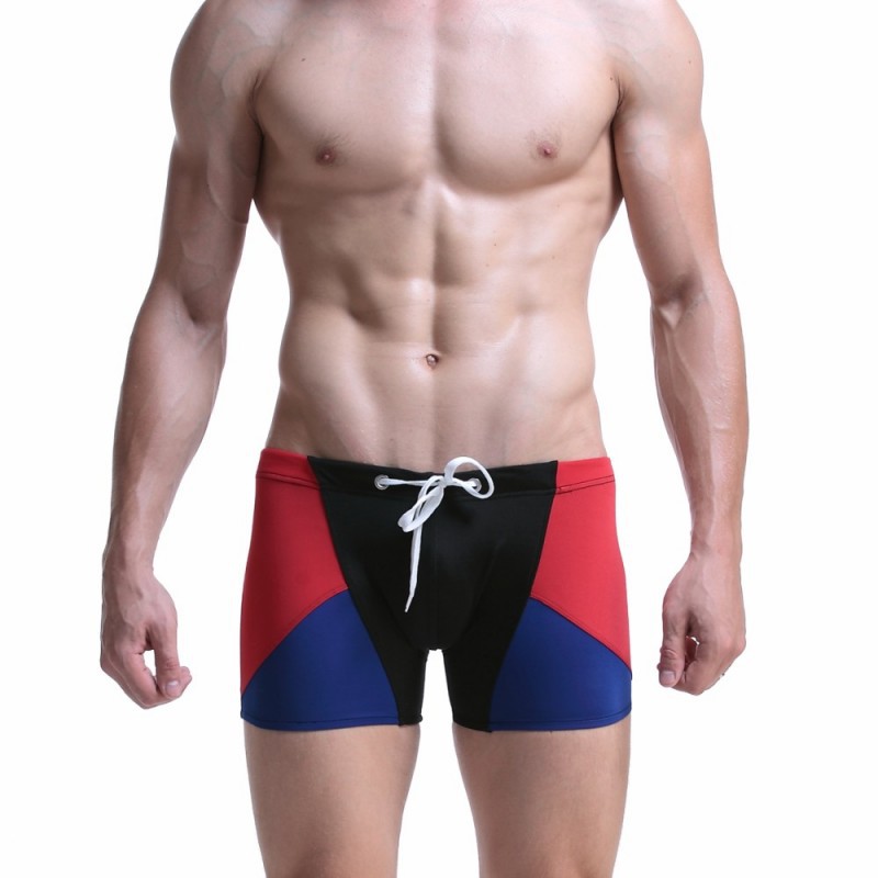 Men's beach board drawstring patchwork swimming trunks swimwear beachwear Black #011PJ