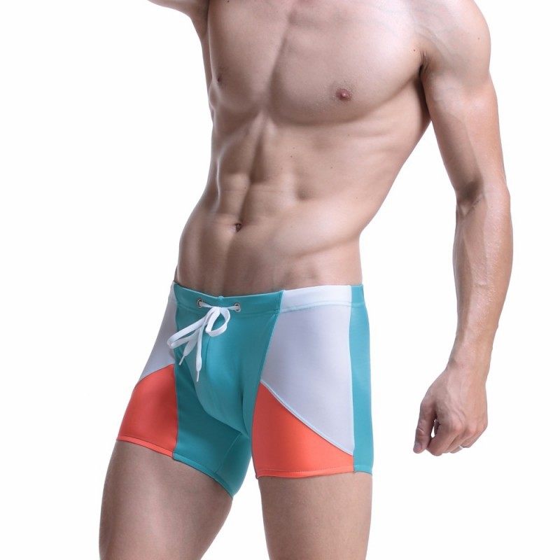 Men's beach board drawstring patchwork swimming trunks swimwear beachwear Light Blue #011PJ