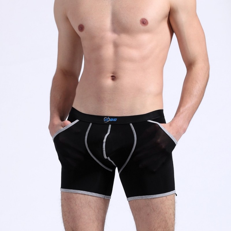 Men's Sexy underwear Extra-thin ice silky boxer shorts translucent underpants underwear Black #06QT