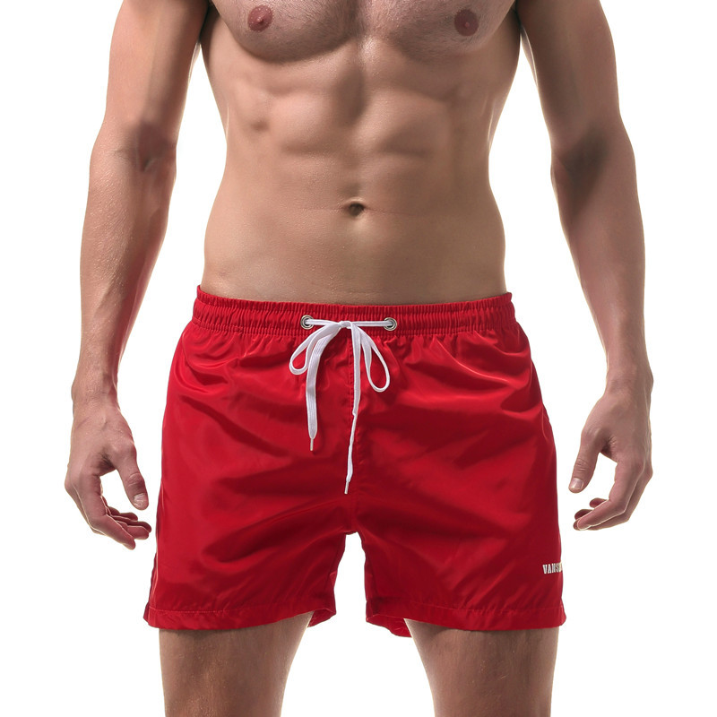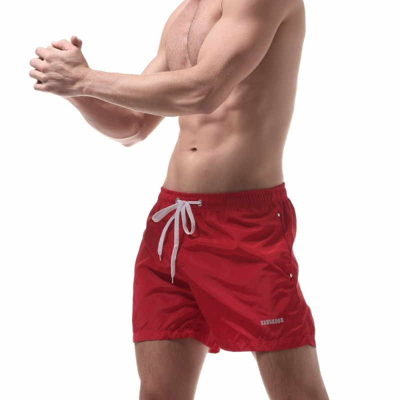 Men's clothing quick-dry drawstring running sports gym causal shorts Red #VS004DK