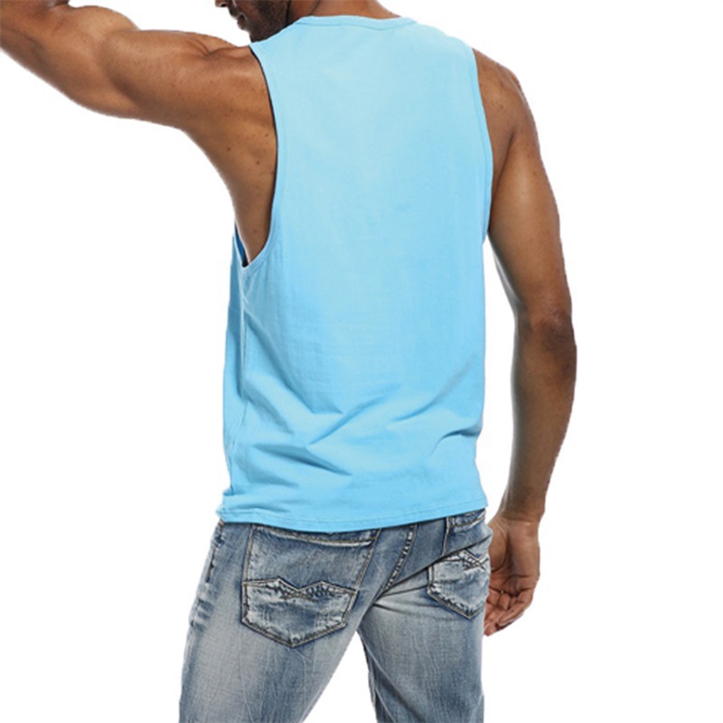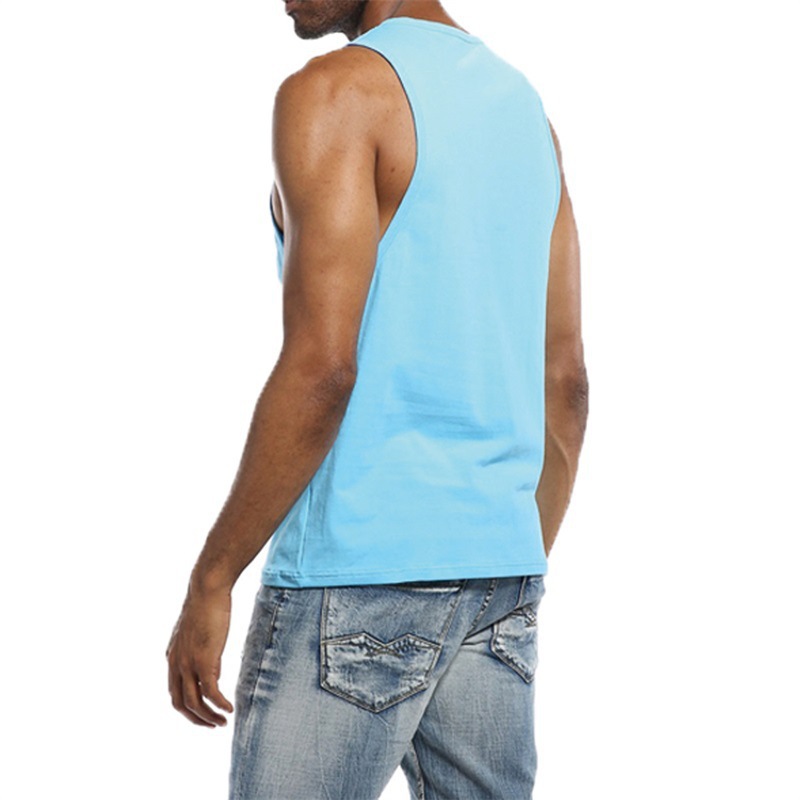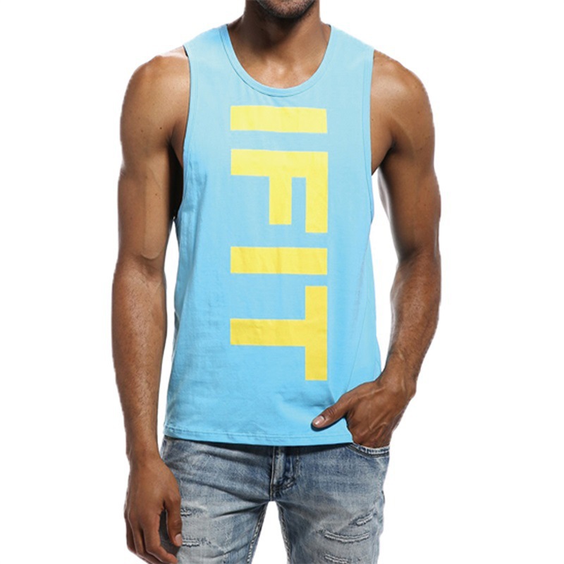 Blue letters Men's summer cotton blend sports fitness tank tops #EU504