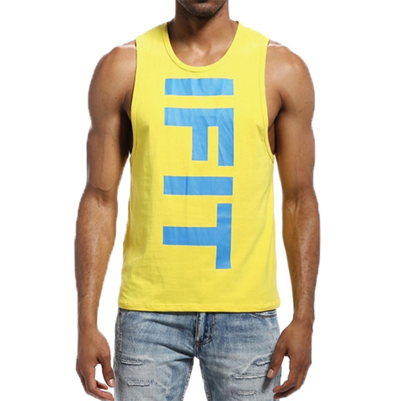 Yellow letters Men's summer cotton blend sports fitness tank tops #EU504