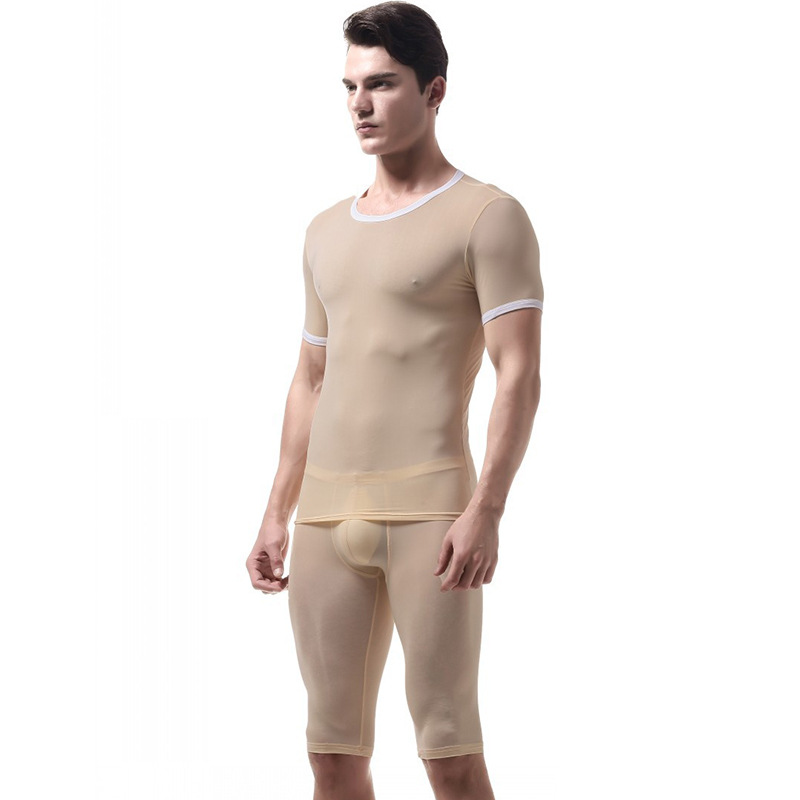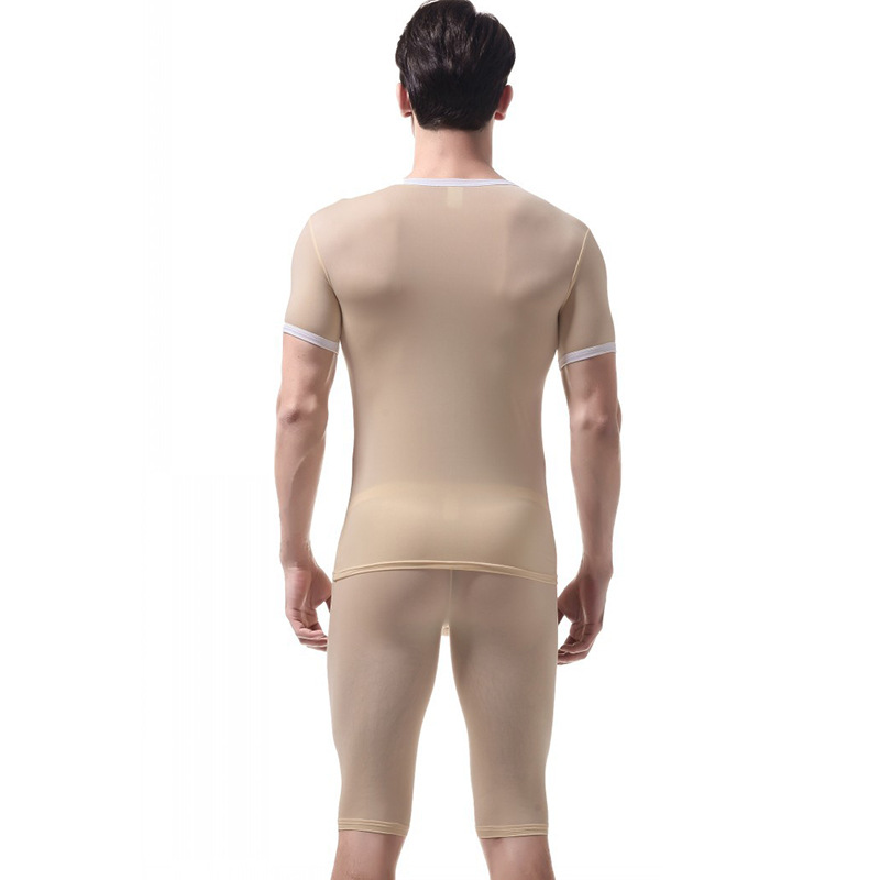 Men's sexy underwear Beige ice silky extra-thin sleepwear loungewear set #VS007DTZ