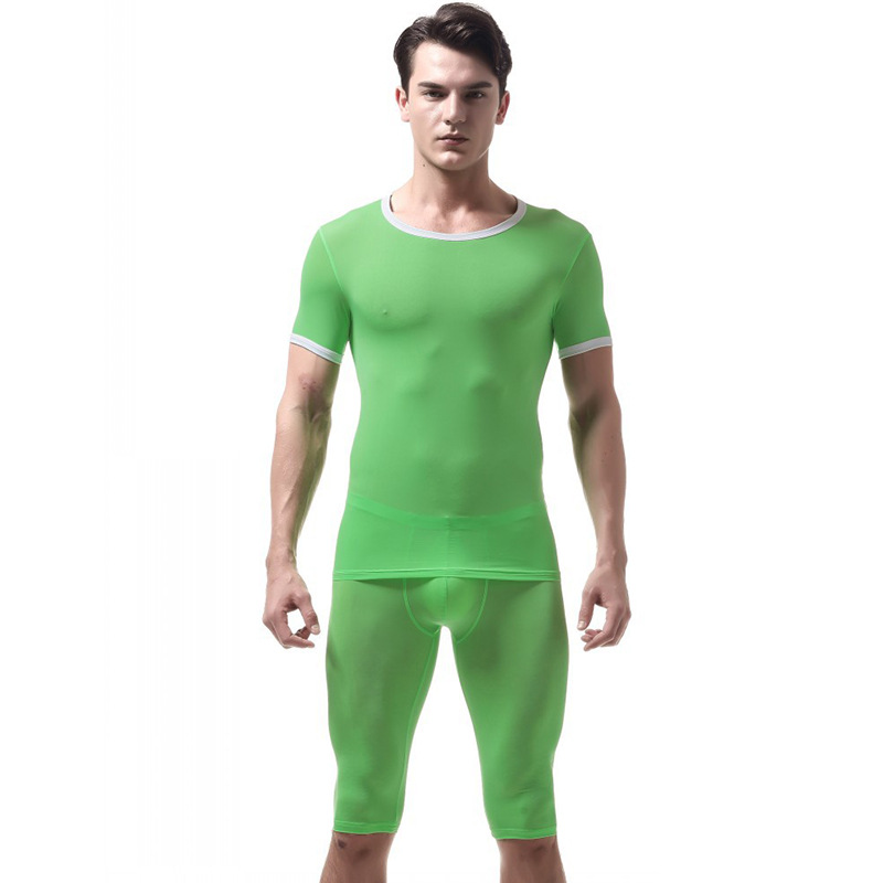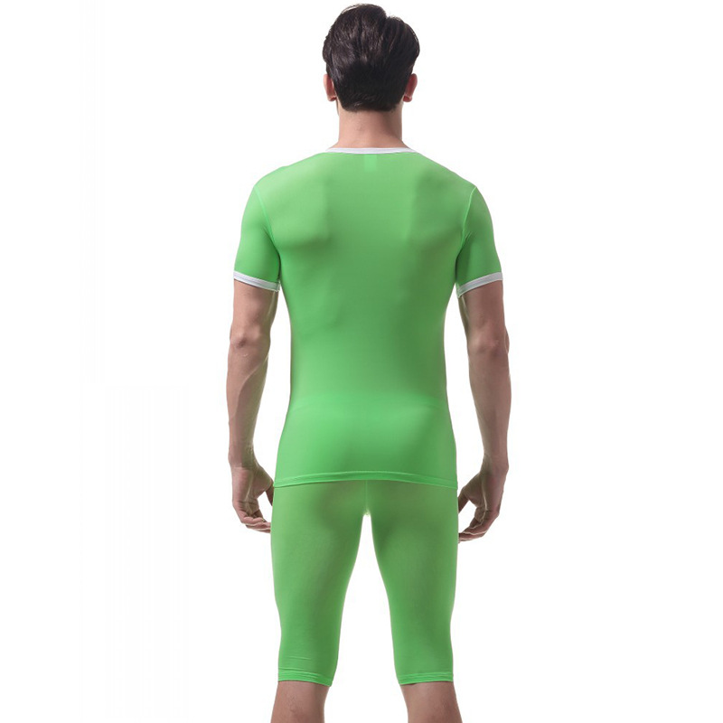 Men's sexy underwear Green ice silky extra-thin sleepwear loungewear set #VS007DTZ