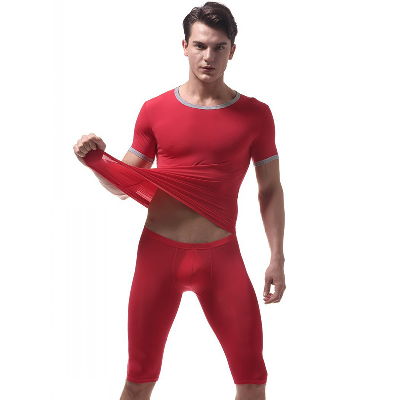 Men's sexy underwear Red ice silky extra-thin sleepwear loungewear set #VS007DTZ