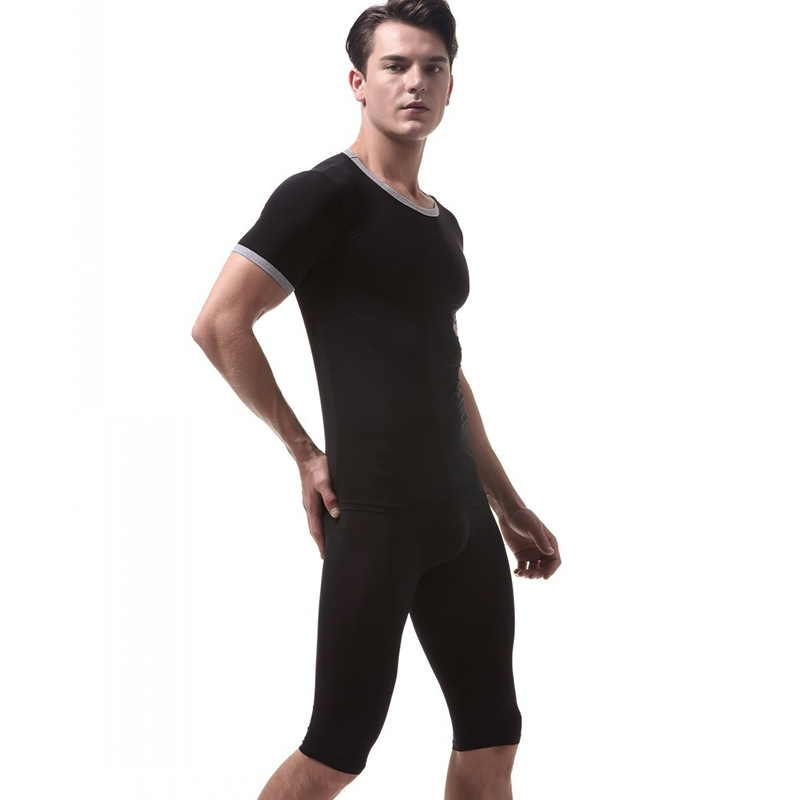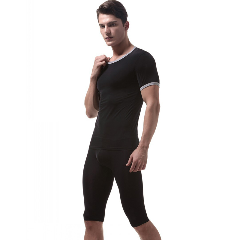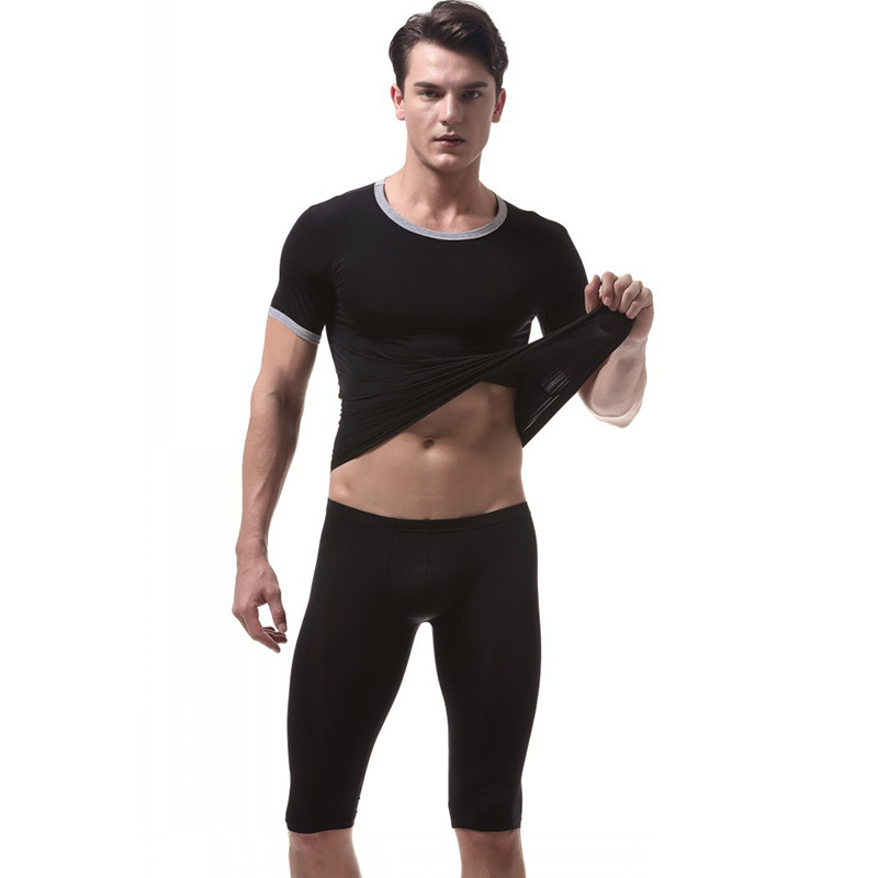 Men's sexy underwear ice silk extra-thin sleepwear loungewear twinset Black #VS007DTZ