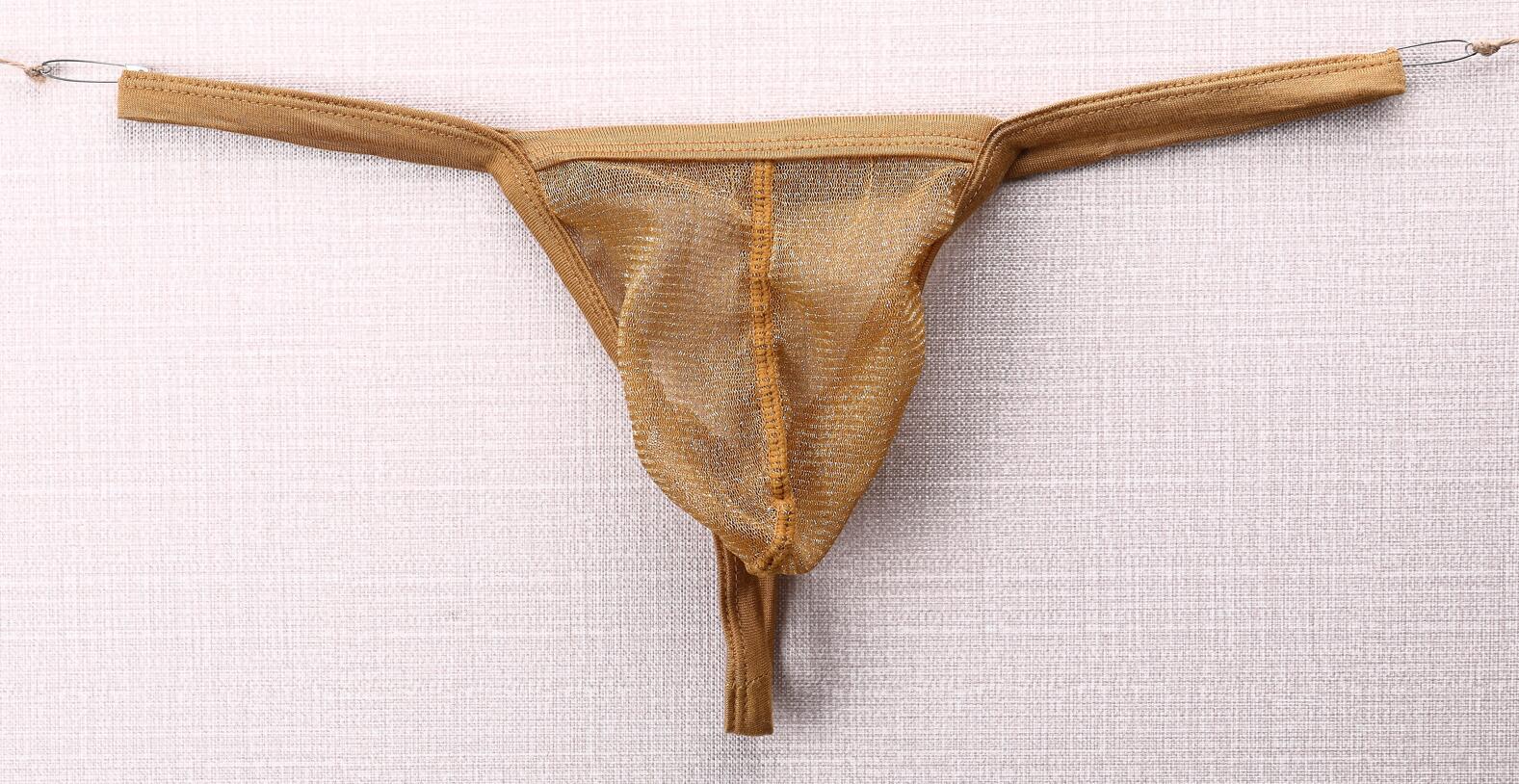 3pcs Sexy Men's underwear shiny mesh gauze thongs t-string g-string Gold #E080