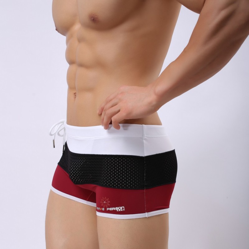 Men's drawstring mesh beachwear swimwear swimming boxers Red #BR1009