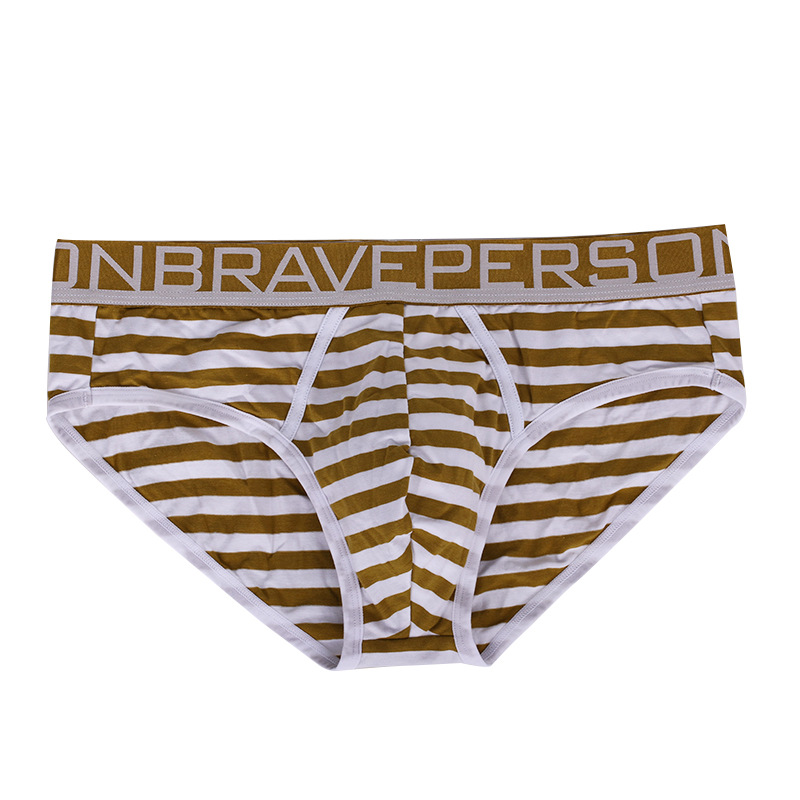 Yellow Striped Cotton Underwear 2PK Men's sexy lingerie breathable pouch briefs underpants #BR1154