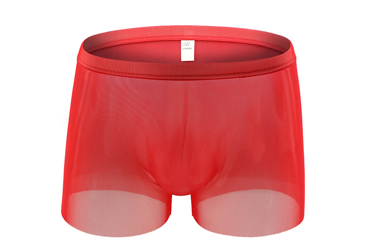 Mesh gauze Men's sexy underwear lingerie sheer seamless boxers underpants Red #A86