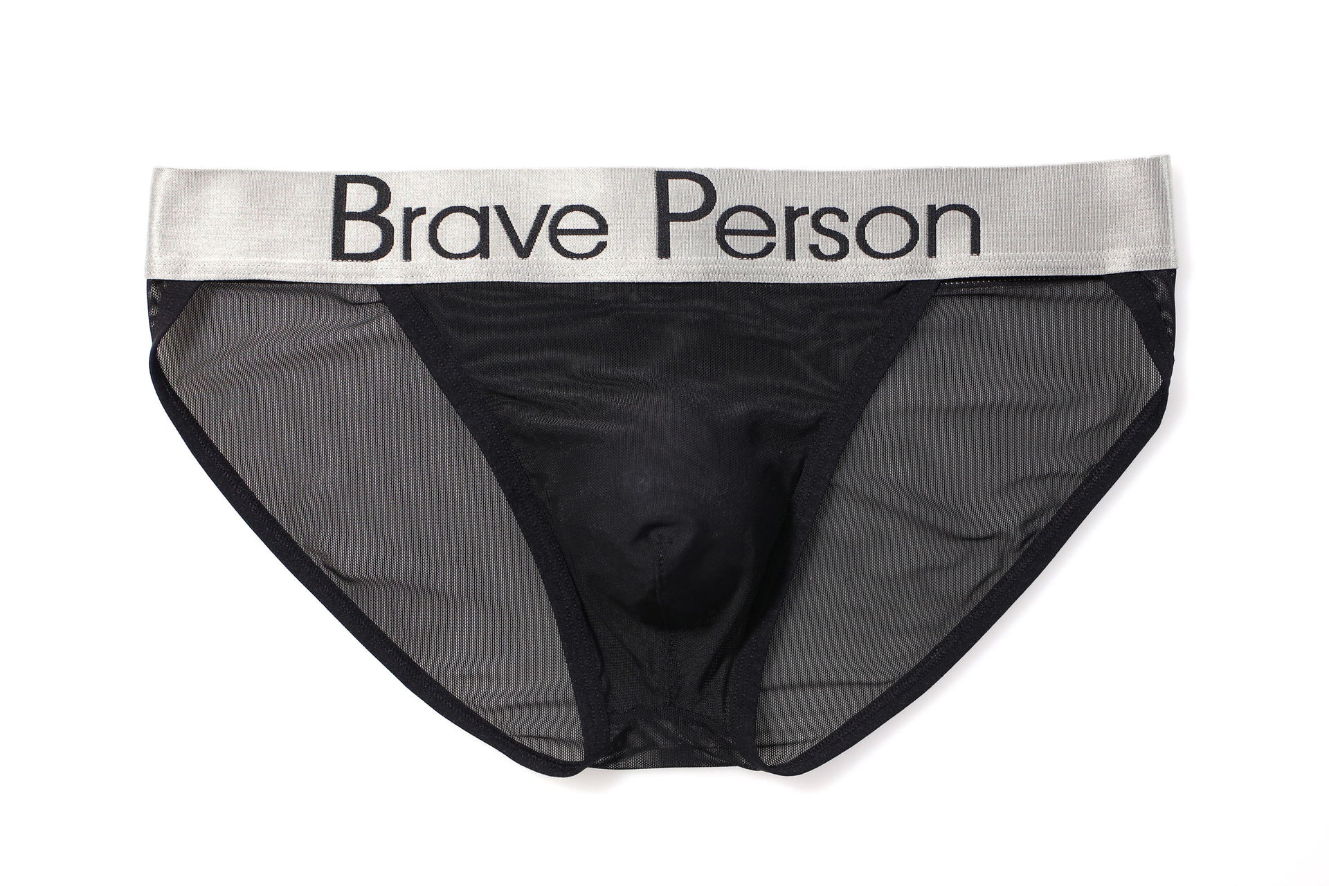 2PK Mesh Gauze Underwear Men's sexy lingerie high legs sheer briefs underpants Black #BR1186