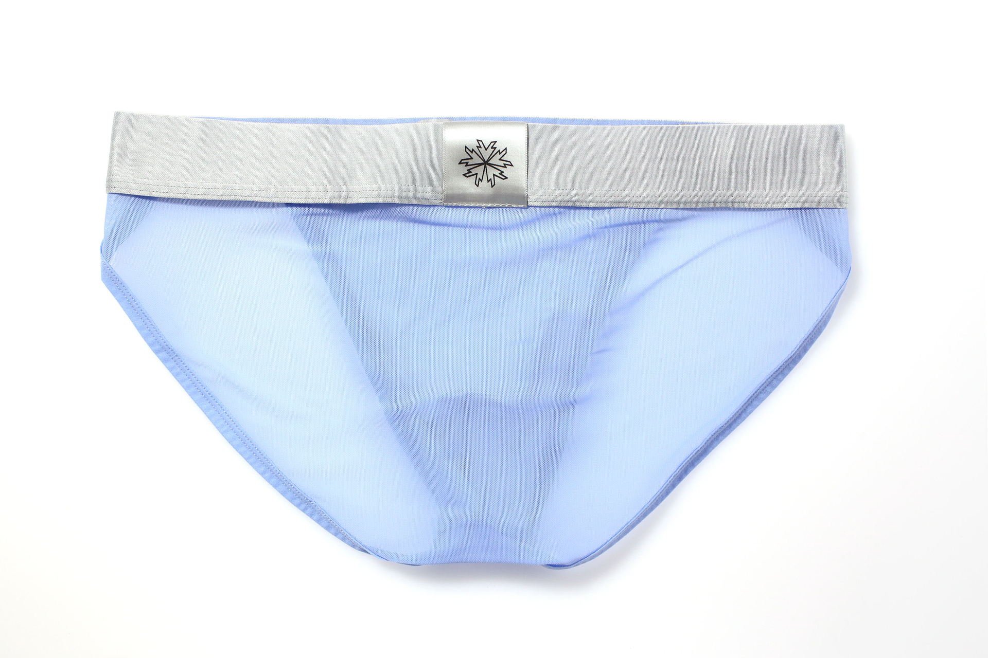 2PK Mesh Gauze Underwear Men's sexy lingerie high legs sheer briefs underpants Light Blue #BR1186