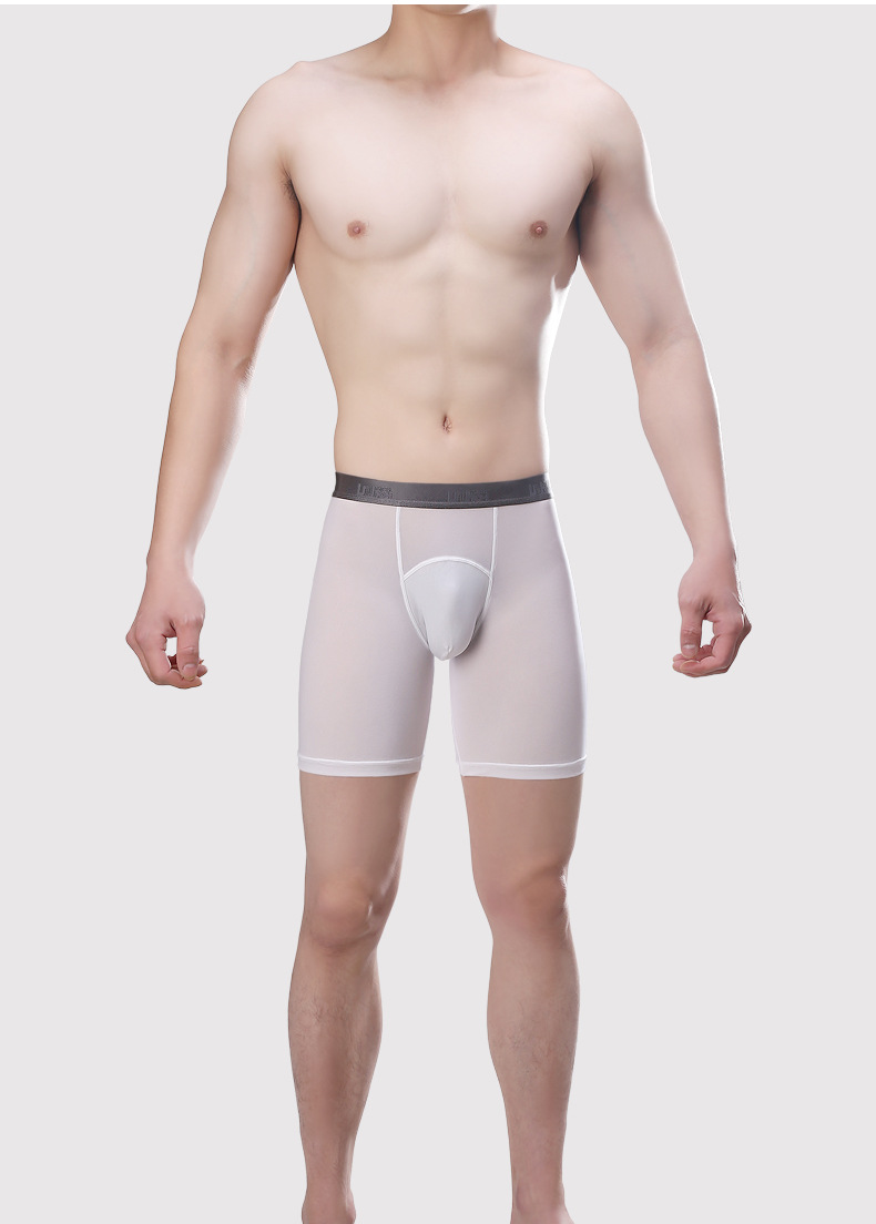 2PK Uzhot Men's sexy underwear ice silk elastic sports lenghten boxer shorts underpants 14015