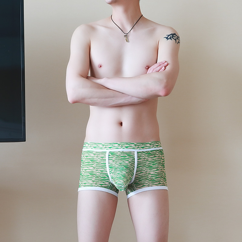 Men's Mesh Gauze Boxer briefs AIBC Male sexy underwear graphic printed breathable physiological underpants A030DP