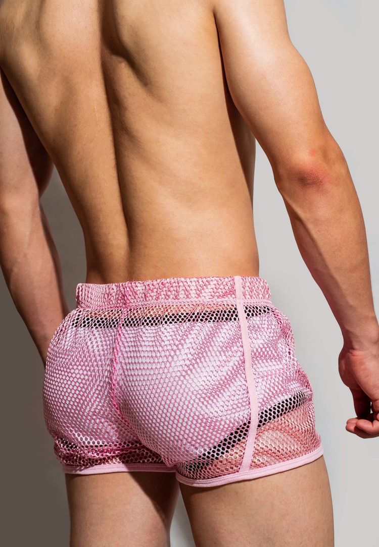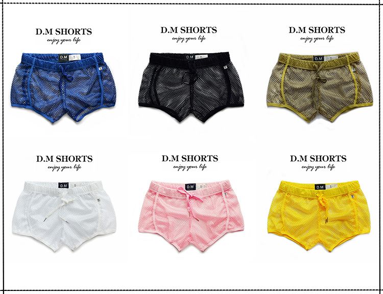 2PK D.M Underwear Mesh Perforated Holes Boxer Shorts Mens Sexy Sheer Homewear Sleep Bottoms DM6005