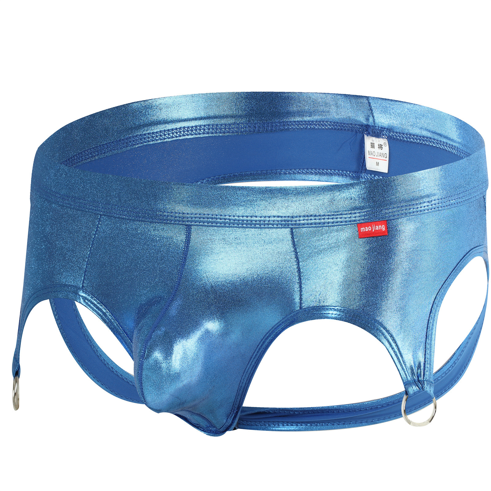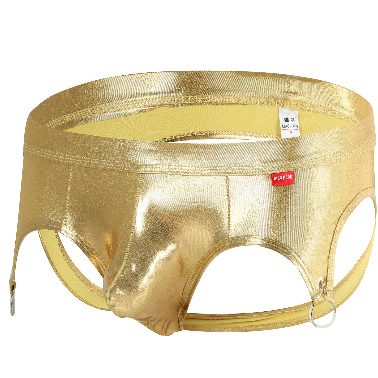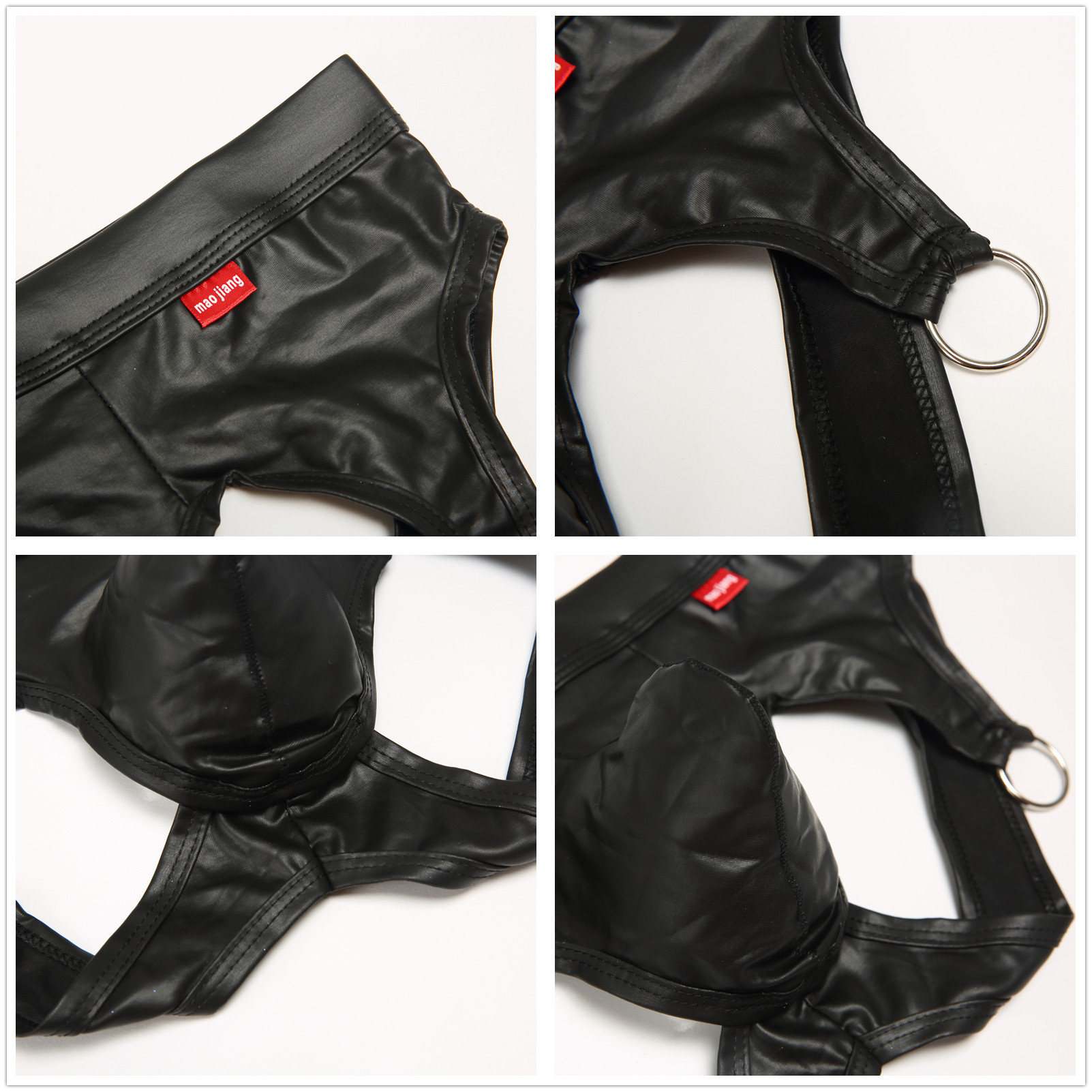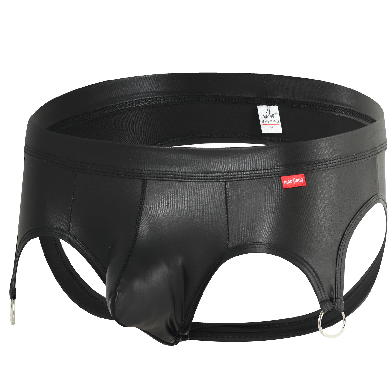 2PK Sexy Gay Mens Underwear Faux Leather Low-rise Cut-out Briefs Underpants MJ2317