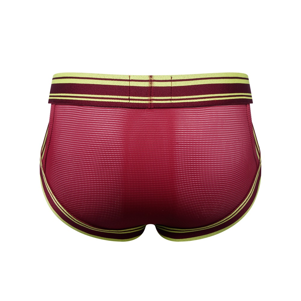 3PK Burgundy mesh gauze men's sexy underwear mesh holes lingerie quick-dry cut-out briefs underpants JM388