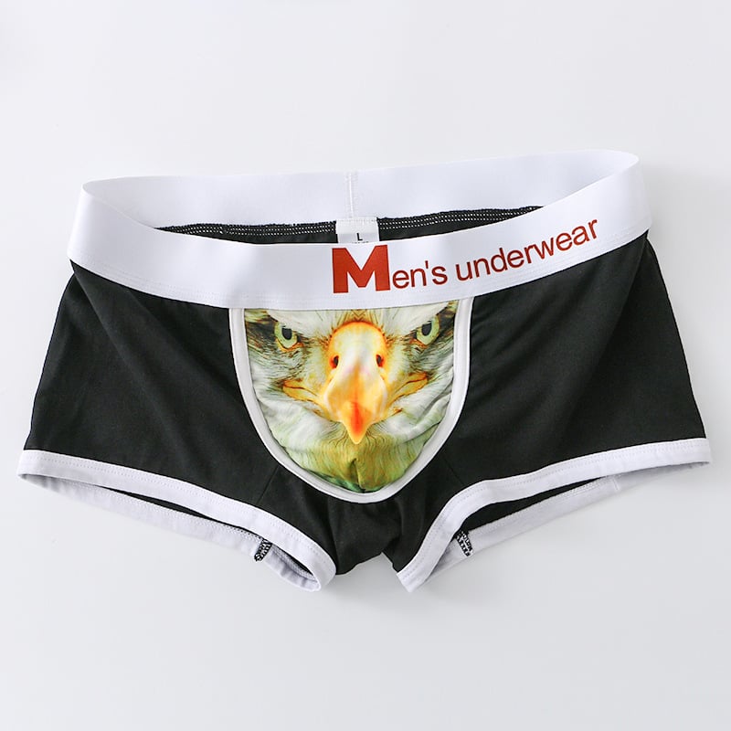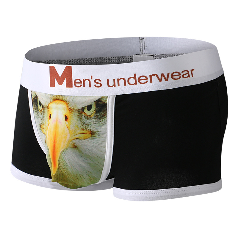 3PK Eagle printed Men's sexy underwear cotton blend mid-rise daily wearing boxer briefs Black DG6001-PJ
